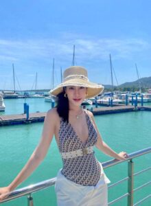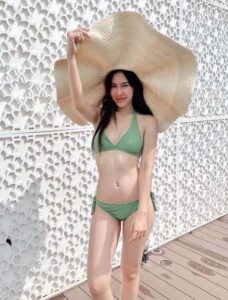 ที่เสื้อกล้ามสีดำลายลูกไม้ อย่างสวยและเนียนตามาก คลุมทับด้วยเสื้อยีนส์แขนยาว แล้วก็กางเกงยีนส์ขายาว เข้ารูปสวยมาก ให้ฟีล ภาพถ่าย แนวสตรีทเท่ ๆ อีกคนหนึ่ง แอบเสียดายที่น้องไม่ค่อยลงภาพ ชุดว่ายน้ำ เท่าไร เห็นมากสุดก็แค่ ชุดวันพีช สีมันม่วง นั่งเล่นอยู่บนเสื่อ